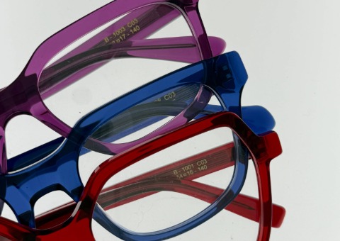 La collezione è realizzata esclusivamente in acetato Mazzucchelli, materiale di alta qualità per la produzione di montature, resa cromatica e finiture di alto livello. Ogni montatura nasce da una filiera corta e controllata, con standard qualitativi costanti.
