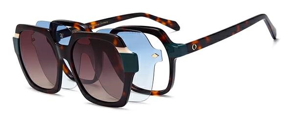 occhiale in acetato esagonale da donna con 2 clip polarizzate cat.1 e cat.3