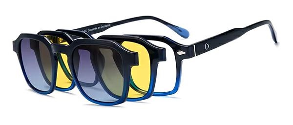 Montatura squadrata da uomo in acetato con doppia clip polarizzata