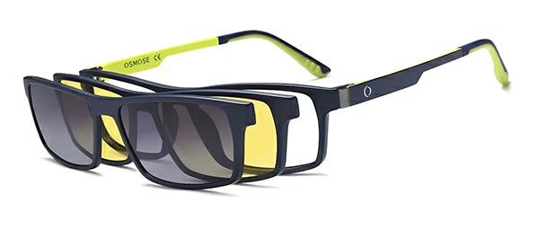 montatura squadrata classica da uomo con inserti colorati e doppia clip