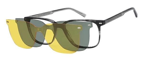 montatura in acetato sottile adatto a lenti progressive con 2 clip polarizzate